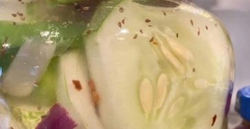 Ingredients 4 thinly sliced cucumbers1-large sliced red onions1-large sliced green bell peppers1-tbsp salt2-cup white vinegar1 1/2-cups sugar1-tsp celery flakes1-tsp red…