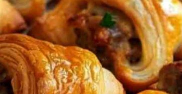 These look like Sausage-Stuffed Puff Pastries, a delicious and flaky appetizer! Here’s a recipe to replicate this savory treat:Sausage-Stuffed Puff…