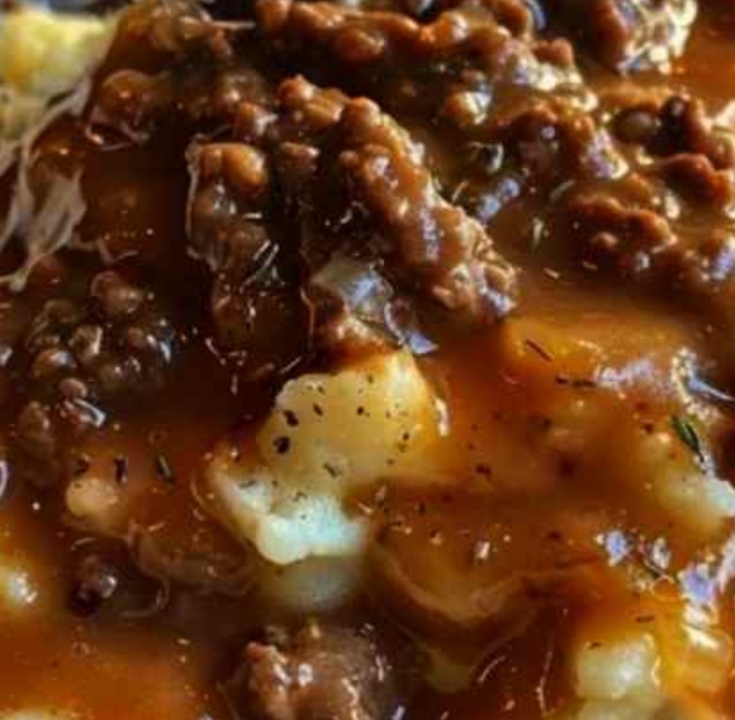 tried this delicious food for the first time at a community gathering. Potlucks can be a mixed bag, with some dishes you politely try and others you happily go back for more. The dish of ground beef and gravy on top of mashed potatoes was a big success, both for me and my husband. We both liked it a lot, so I had to ask for the recipe. It wasn’t only us, but others as well. All the guests loved it and wanted to know the recipe and figure out the special ingredients. Tasty, delicious, and satisfying—everyone wanted to be part of it.After the shared meal, I approached the cook, an elderly woman with a friendly smile who had a lot of experience in the kitchen. She was very happy to give me her recipe, feeling a bit flattered by all the attention. I was excited to get home and test it out. The first time I did it, I felt a bit anxious. Will it taste as good as hers? To my happiness, it was wonderful. The tasty sauce on top of smooth mashed potatoes quickly became a favorite in our home.Now, I am sharing this wonderful thing with you, hoping it brings as much happiness to your dinner table as it does to ours. Let me explain how to make this delicious and satisfying meal that is great for any event.Ingredients:Ingredients for the mashed potatoes:2 pounds of potatoes, peeled and cut into four pieces.Half a cup of milk4 tablespoons of butterAdd salt and pepper according to your preference.For the meat and sauce: 1 pound of ground beef1 onion of medium size, chopped2 pieces of garlic, chopped2 tablespoons of regular flour2 cups of meat broth1 tablespoon of Worcestershire sauceAdd salt and pepper according to your preference.You can add 1 cup of frozen peas and carrots if you like.Instructions:Make the mashed potatoes.Put the peeled and cut potatoes in a big pot and add water to cover them. Sprinkle a little salt and heat until boiling.Lower the temperature and allow the potatoes to cook gently until they are soft, which should take around 20 minutes.Remove the water from the potatoes and put them back in the pot. Put the milk and butter, then crush until it is soft and creamy. Add salt and pepper to your liking. Put a lid on the pot to keep the potatoes hot while you make the sauce.Cook the minced meat and make the sauce.In a big frying pan, cook the ground beef on medium-high heat until it is no longer pink. Remove any extra grease.Put the chopped onion and crushed garlic in the pan with the meat. Cook for around 5 minutes, until the onions are see-through.Add the flour to the beef mix and stir for 2 minutes to remove the raw flour taste.Slowly add the beef broth and Worcestershire sauce while stirring, making sure to scrape off any browned pieces from the bottom of the pan. Heat the mixture until it starts to bubble gently and allow the sauce to become thicker, which should take around 5 minutes.If you want, you can put the frozen peas and carrots in the pot during the final minutes of cooking. They bring color and extra nutrients.Add salt and pepper to the gravy according to your preference.Serve: Put the smooth mashed potatoes on plates or in bowls.Put the ground beef and gravy mixture on top of the potatoes.Heat it up and savor the coziness and warmth of this tasty dish.I remember the first time I cooked this dish at home, my husband came into the kitchen because of the delicious smell. “What are you making?” he inquired, looking over my shoulder. When I told him, he looked very happy. He knew exactly what was going to happen.We sat down to eat, and as soon as we took the first bite, it was like we were back at that shared meal. The mashed potatoes were smooth and buttery, a great match for the tasty ground beef and gravy. We both agreed that we should keep making this dish.Since then, it has become a regular part of our home. It’s a meal that is great for a comfortable night at home, especially when the weather gets colder. I love how simple it is to prepare, but it tastes like a dish from a cozy restaurant.One great thing about this recipe is how adaptable it is. At times, I like to mix things up. I have included mushrooms in the sauce for a natural taste, or mixed sweet and regular potatoes for the mashed potatoes. You can make it healthier by using ground turkey instead of beef or adding more vegetables like green beans or corn.Another suggestion: if you are in a hurry, you can make the mashed potatoes in advance. They warm up nicely with a bit of milk to make them creamy again. The sauce can be stored in the refrigerator for a few days, which makes it perfect for preparing in advance.This meal has become our favorite choice for relaxed dinners with friends as well. It’s simple to make more food for a large group, and everyone loves it. There is something special about how the flavors and textures come together to create a very satisfying experience. Moreover, it is reassuring in a special way that only food made at home can provide.Are you searching for a tasty and satisfying meal that everyone will enjoy? Try this ground beef and gravy served over mashed potatoes. It is a meal that unites people, making happy memories and satisfied stomachs. Maybe it will also become a favorite in your home, just like it did in ours. Enjoy!